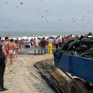 Apparently we are not the only ones with this freaky feeling, as the German surfer joining us at the line-up asks: “Are we safe here?” After 20 minutes, we feel a bit less tension and we try to catch some waves. They are really powerful and fast but we manage to surf a few, avoiding the washing machine, and we finally make it back safely to the beach.